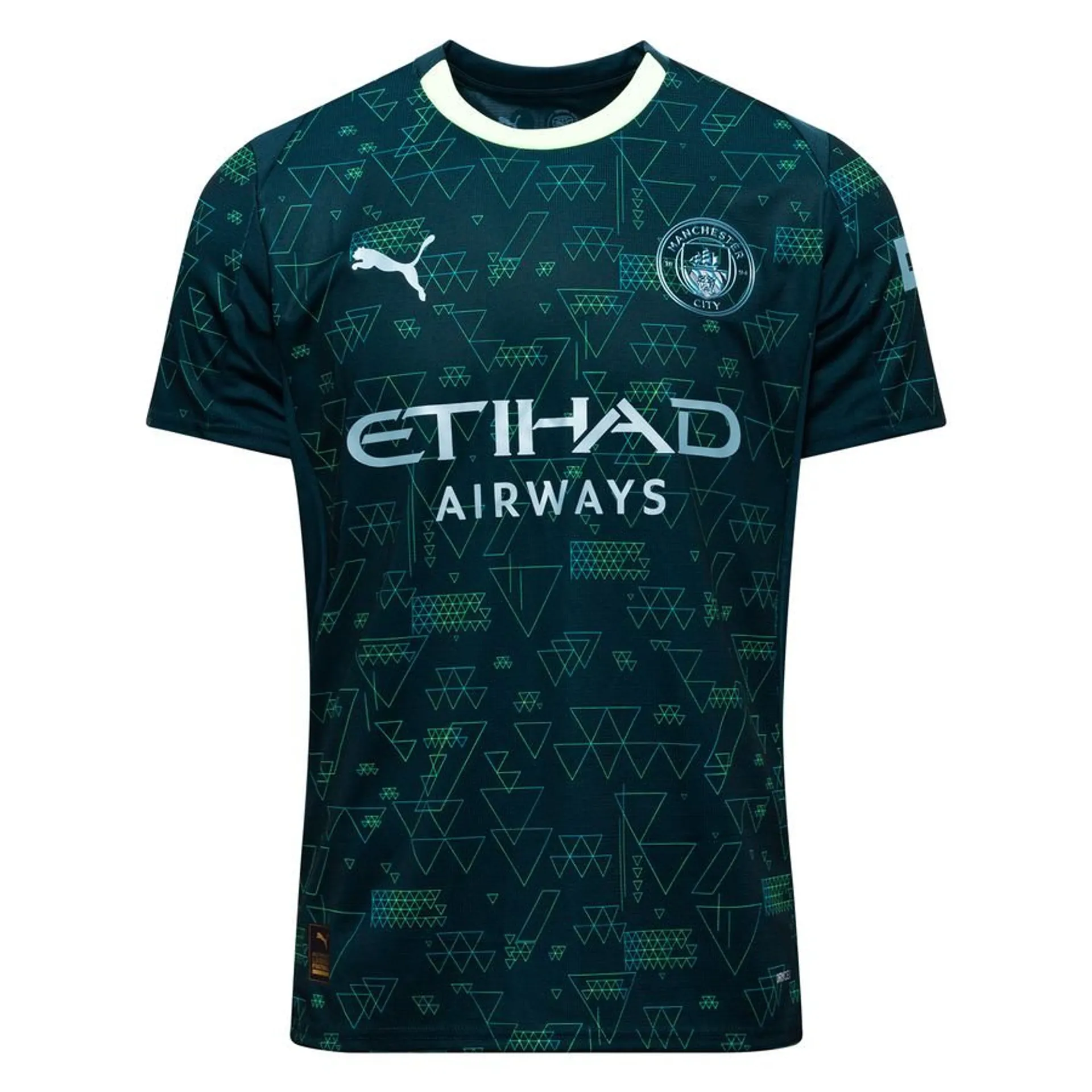 Manchester Citys trøjer er umiskendeligt kendetegnet ved den lyseblå hjemmefarve, ofte kombineret med kontrastdetaljer i navy, hvid eller mørkere blåtoner. Designet varierer fra minimalistiske rene linjer til mere grafiske mønstre, hvor subtile teksturer eller diagonale linjer kan give dybde. Ærme- og kravedetaljer, tonede striber eller små grafiske elementer bruges ofte til at give trøjen et moderne udtryk uden at gå på kompromis med det klassiske look.